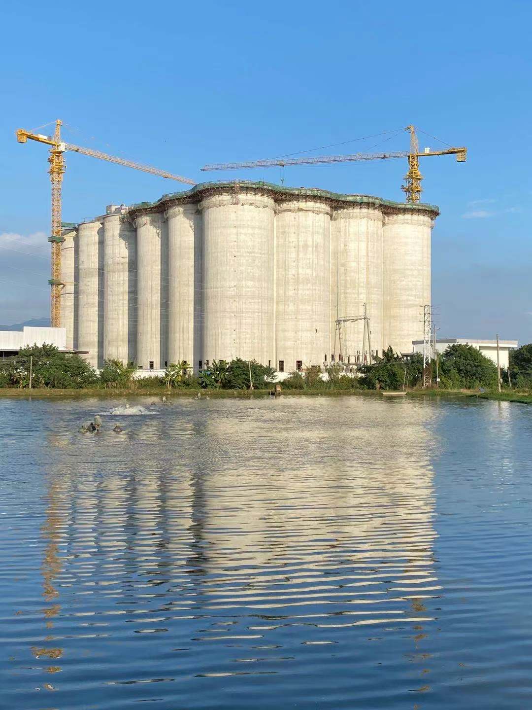 為克服疫情防控常態(tài)化等多種不利因帶來的建筑市場持續(xù)疲軟的困難,江蘇鎮(zhèn)江四建建設(shè)集團(tuán)充分發(fā)揮滑模核心技術(shù)優(yōu)勢,主動積極開拓外埠糧油倉儲物流建設(shè)市場,收到良好成效。圖為集團(tuán)承建的位于肇慶市高要區(qū)大灣鎮(zhèn)的倉儲物流項(xiàng)目,24只高40米、直徑15米,占地面積5400余平方米的大型筒倉群,于日前順利滑升到頂?shù)膲延^情景。
