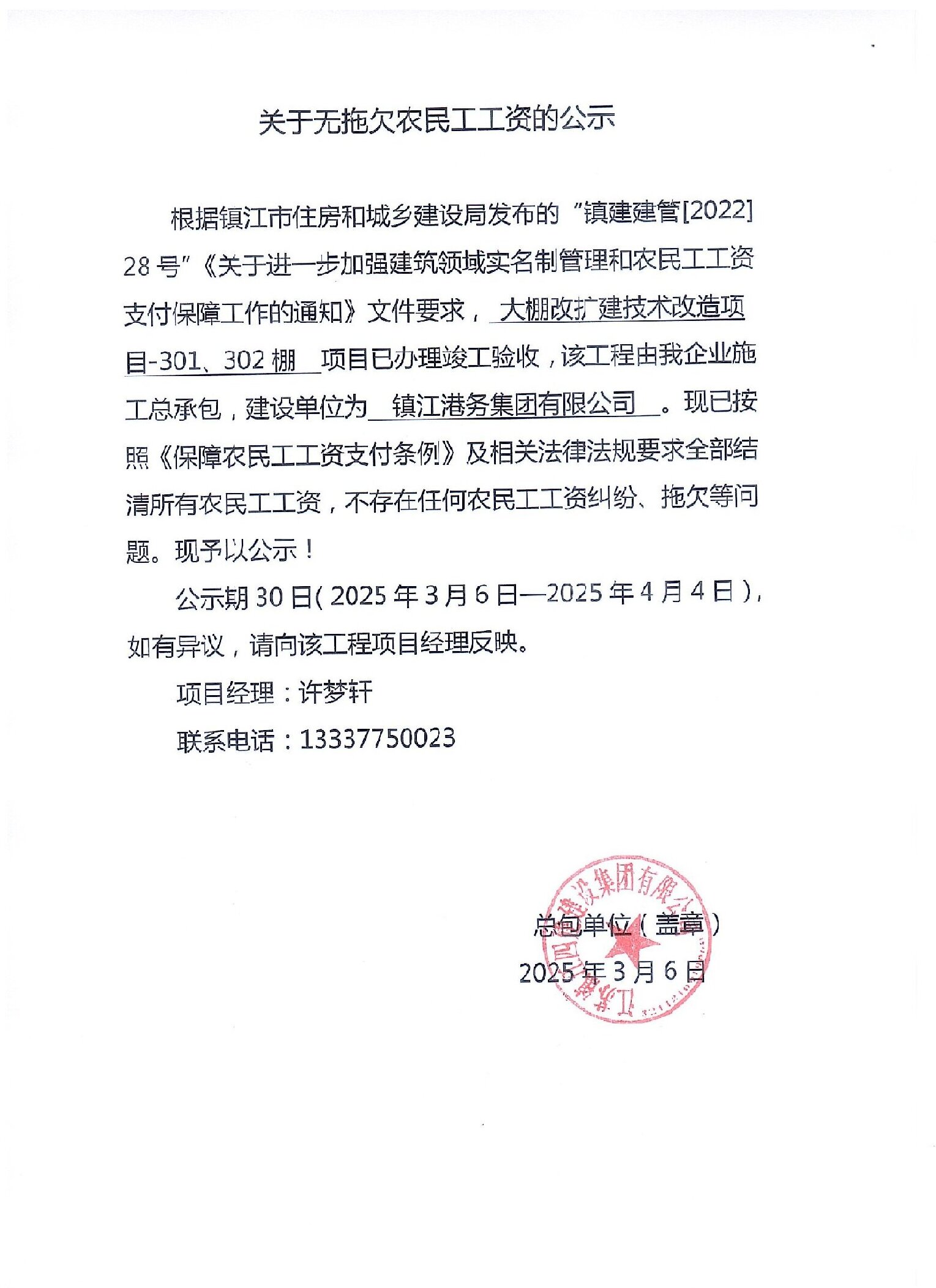 關(guān)于無拖欠農(nóng)民工工資的公示